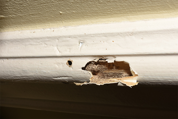 - Damaged wood: Hollow-sounding wood or wood that appears damaged or blistered