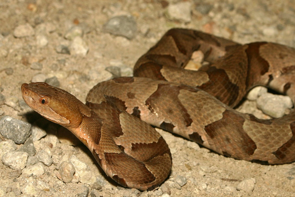 There are several types of snakes in the Carolinas and Virginia. Depending on your precise location, you may see more of one kind than another. In western North Carolina and southwest Virginia, there are only two venomous snakes: The Copperhead and the Timber Rattlesnake. Of the two, you are most likely to find copperheads on your property. If you are farther east, you may also have a few Cottonmouths that can be quite dangerous. Other snakes you will find in this area include:
